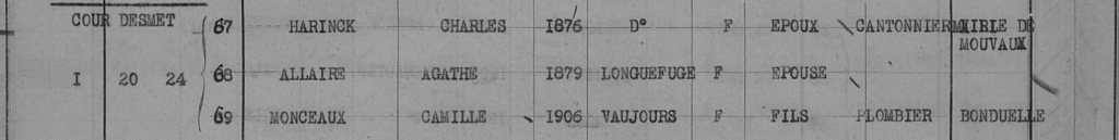 Mon enquête a commencé par les recensements de la commune de Mouvaux en 1926, où je retrouve Camille Monceaux à l’adresse indiquée dans l’article.