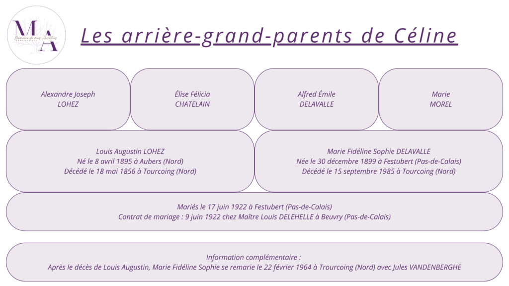 Dans l’épisode 1 (ici), je vous ai montré ma méthode et les outils pour démarrer mes recherches à partir d’un échange avec Céline et nous avons pu découvrir les parents, Louis Augustin LOHEZ et Marie Fidéline Sophie DELAVALLE, de son grand-père.